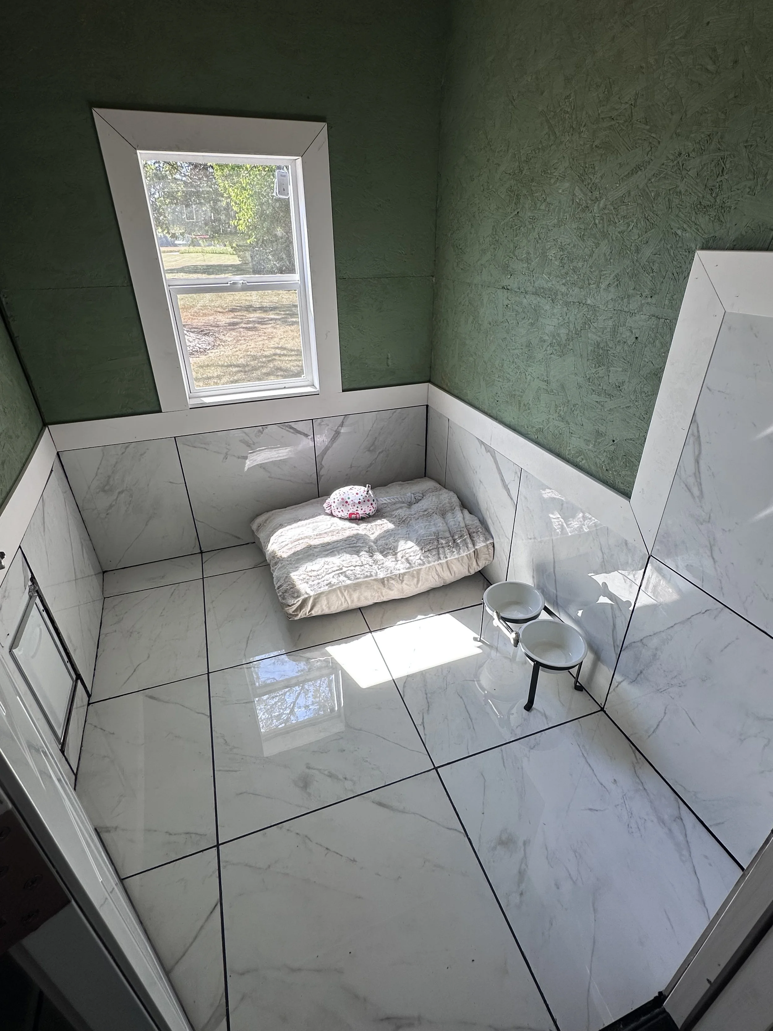 We are in the process of building rooms for each and every rescue that we have on site with us. While we want to save as many dogs as we can, we also want to do it the right way. Shelters are stressful, loud, and not set up for long term stays. Unfortunately, with the amount of stray dogs and the lack of adoptions, dogs are remaining in shelters for several years or just long enough to face euthanasia. We believe every dog deserves a chance to decompress and have a space of their own. This is our first step towards a safe, comfortable, and stress free environment.